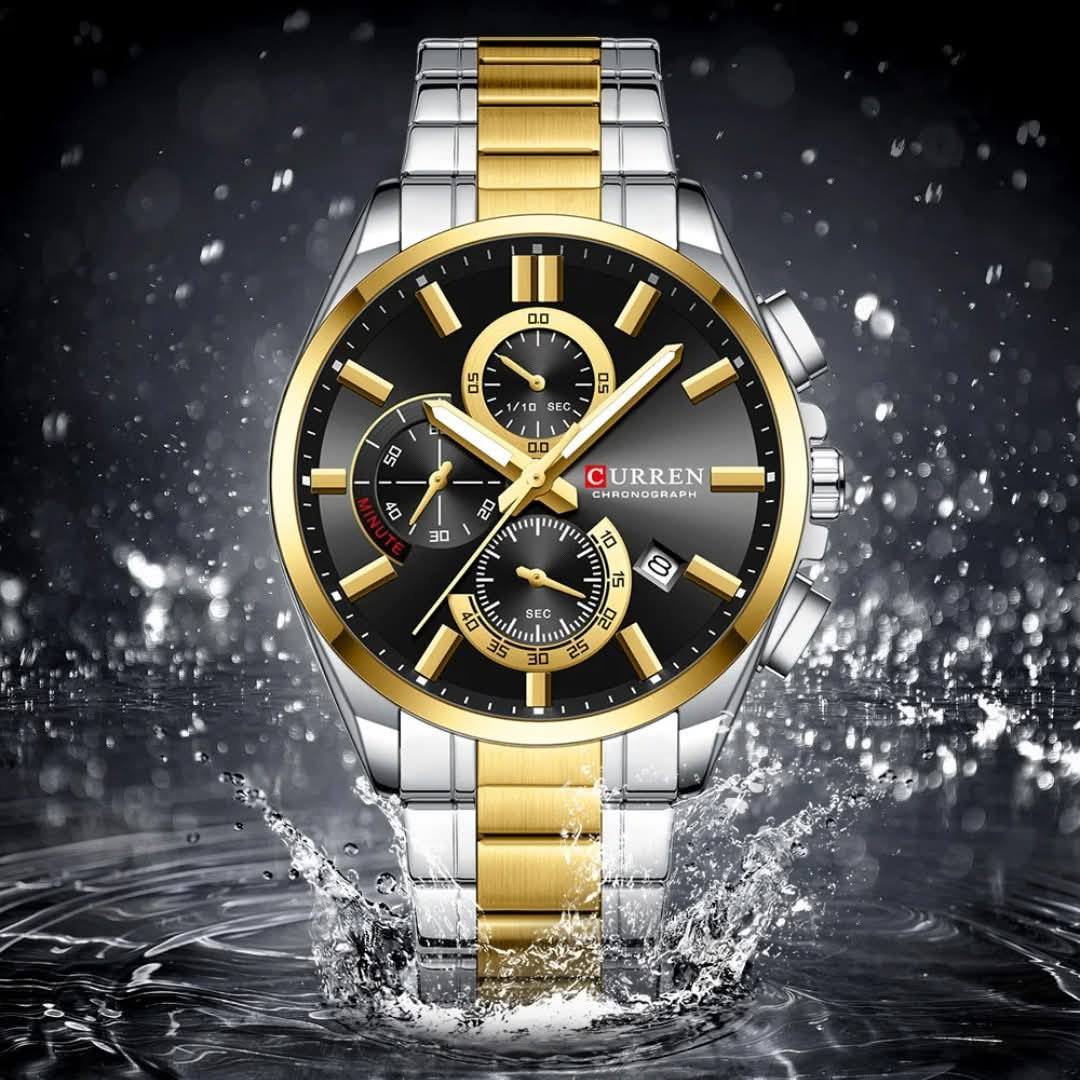 Montre Homme Curren 8475 Argent Doré Fond Noir – Élégance et Singularité